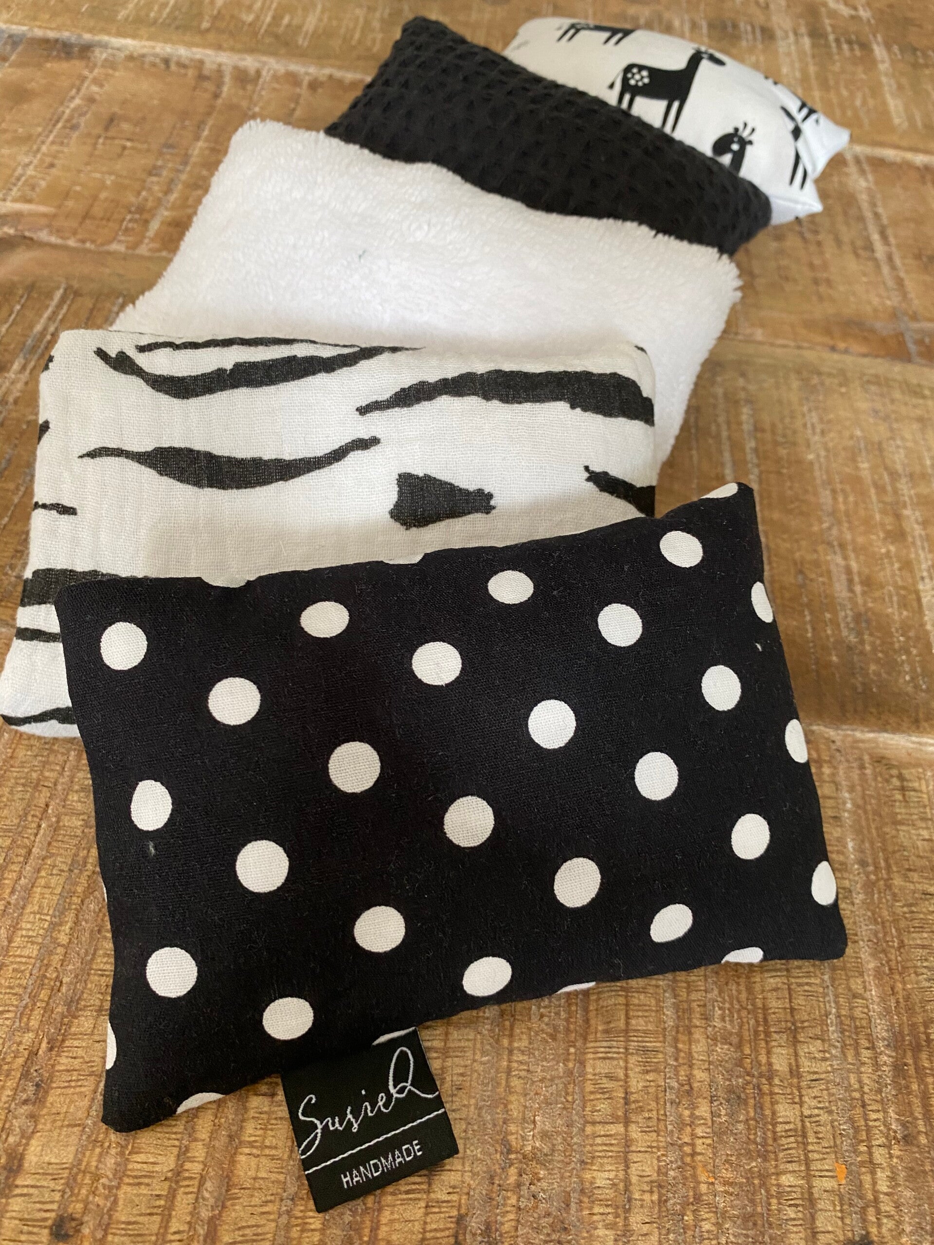 De speelzakjes van SusieQ Handmade bestaan uit een gevuld binnenzakje en een los buitenzakje. Het buitenzakje sluit met kindvriendelijk zacht klittenband en kan keer op keer in de wasmachine gewassen worden.